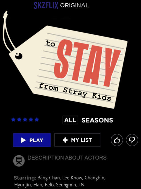 Hi, Stay! ¡Welcome to SKZFLIX! This is a website made for stay by stay.We had the idea of making SKZFLIX because of the video they uploaded on stay's 2nd anniversary in 2020, where in the beginning you can see the SKZFLIX logo. We thought it would be cool if something like it was real!In this website we share links to the official videos and when the show has not been uploaded officially, we try to search it with English subtitles. If you know where to watch a program/show with subtitles in another language, you can send them to us and we'll check it.We recommend using SKZFLIX on your computer or your phone in "desktop site" mode.If there's something that's not working, please tell us!We'll keep updating SKZFLIX and we'll notify it on our Twitter: @realSKZFLIX